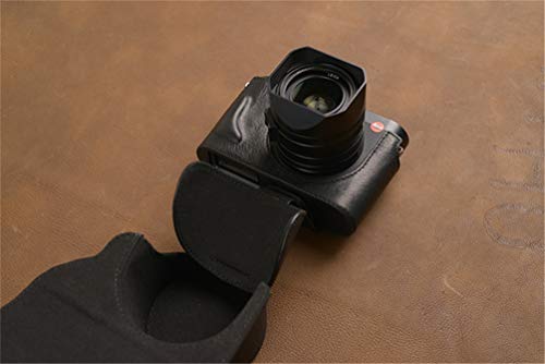 Puuboo Custodia in Pelle Leica Q2, Custodia in Pelle Fatta A Mano con Rivestimento Completo in Pelle 2019 E Custodia Mezza Fotografica per Fotocamera Leica Q2,Black