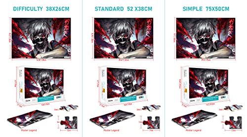 Puzzle 1000 pezzi Anime Tokyo Ghoul puzzle adulti bambini puzzle difficoltà Ken Kaneki occhi rossi capelli bianchi maschera denti occhiolino sorriso sangue Kagune puzzle 38x26 cm