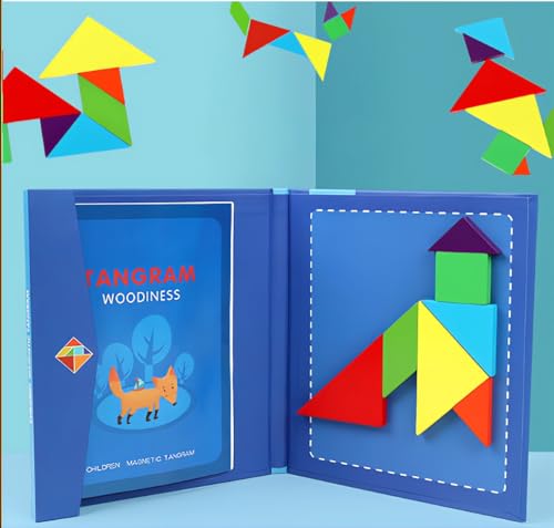 【Pioniera e pensiero innovativo】 Puzzle Tangram sono stimolanti e divertenti. Ci sono 96 modelli di riferimento e migliaia di modelli possono essere assemblati. Il puzzle è composto da animali, persone, oggetti, barche e figure geometriche. Geometrico Forma di Puzzle La dimensione è chiara a colpo d'occhio e il design del libro è piccolo e facile da trasportare.