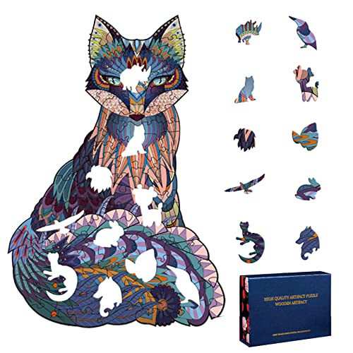 Puzzle Legno per Adulti Volpe, Puzzle da 200 Pezzi Puzzle Animale in Legno a Forma Unica per Gioco di Famiglia Regalo con Scatola di Immagazzinaggio