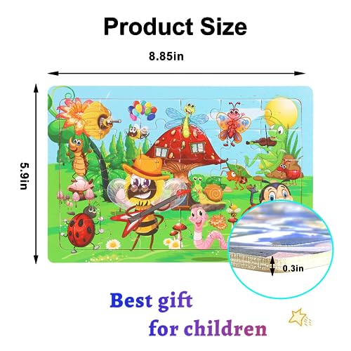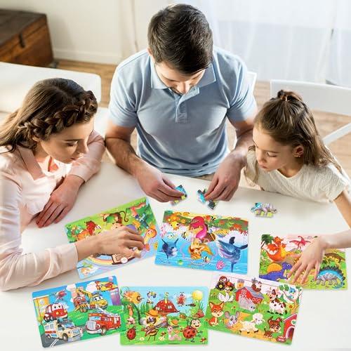 Set di Puzzle: Il set di puzzle in legno per bambini include dinosauri, animali, insetti, fattoria, oceano e traffico. I bambini possono esplorare e imparare in diverse scene. Ogni tema comprende 30 robusti pezzi di puzzle in legno.