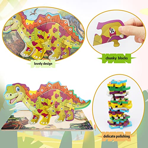 Puzzle di Legno, Puzzle Dinosauro per Bambini di età 1-4 Anni, Giocattoli Educativi Montessori di Apprendimento per Bambini