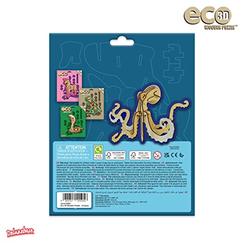 Puzzle 3D di Legno Eco - Polpo di Deluxebase. Puzzle 3D Scultura di Legno, Creativo ed Educativo per Bambini, in Legno Riciclato e Sostenibile