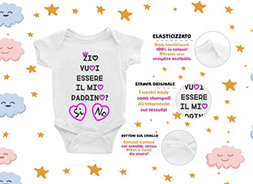 Puzzletee Body Neonato Padrino - Femminuccia Zio vuoi essere il mio Padrino? - Body Neonato Padrino - Body Neonato Battesimo - Body Neonato Madrina e Padrino