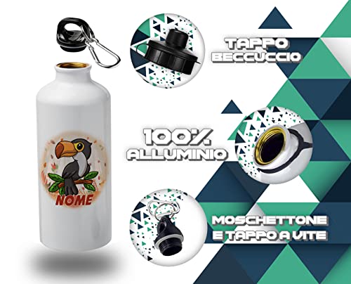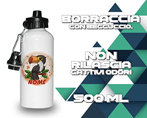 Puzzletee Borraccia Bambino Uccello - NOME PERSONALIZZABILE - Tucano - Animali Simpatici - Borracce 500 ML - Bambino - Idee Regalo