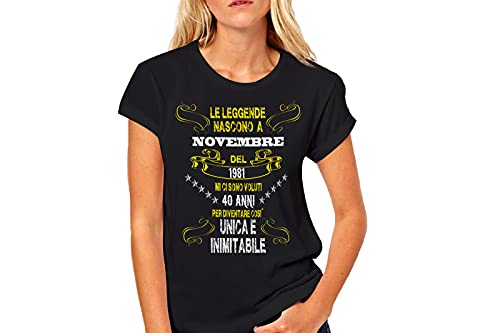 Puzzletee Maglietta Compleanno Donna Novembre 40 Anni - Le Leggende Nascono a Novembre del 1981 - Mi Ci Sono Voluti 40 Anni per Diventare così Unica e inimitabile - Idea Regalo Compleanno