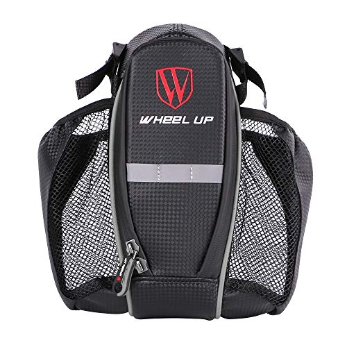 Pvnoocy - Borsa da sella per bicicletta, impermeabile, con striscia riflettente doppia, tasca per borraccia, per mountain bike e bici da strada, nero e grigio.