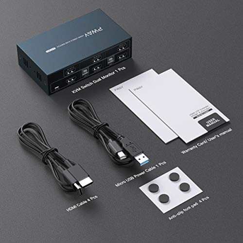 PWAY HDMI Switch KVM a 2 Porte Supporto Doppio Monitor 4K@30Hz Y: U: V: 4: 4: 4 con 2 PC Cavo HDMI e USB da 5 Piedi Sistema Compatibile Windows/Linux/Mac ECC