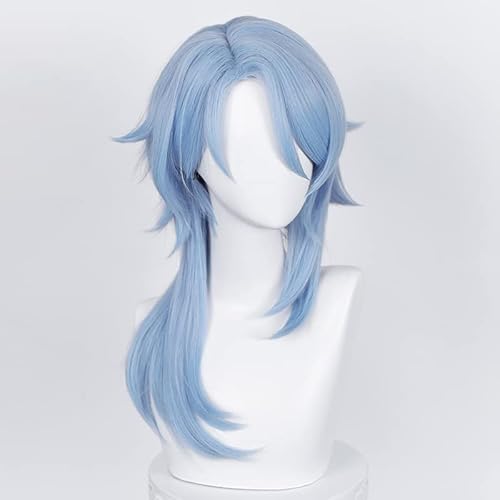 PWEINCY Parrucca blu con separazione laterale a strati per donna Parrucche sintetiche per cosplay Kamisato Ayato Halloween