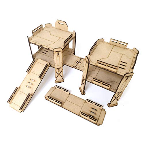 Pwork Wargames Combat Zone 02 - Set di Elementi scenici di ambientazione Sci-Fi per Miniature in Scala 28mm/35mm - Tabletop Miniatures wargame 3D Scenery Terrain - MDF 3mm