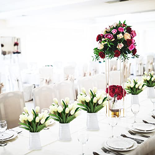 Pwsap 6Pcs Tulipani Artificiali, 13,5" Tulipani Finti Bouquet, Tocco Reale in Lattice Fiori Finti per Casa Giardino Nozze Room Mazzo Festa Hotel Ufficio DIY Decorazione Valentino Natale, Bianco Latte