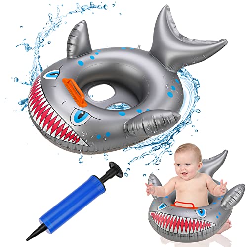 Pwsap Anello di Nuoto del Fumetto, Squalo Salvagente Neonato Galleggiante Gonfiabile del Bambino Dell'anello di Nuoto del Baby Float Salvagente con Seggiolino and Gonfiatore Bambini Piscina Giocattolo