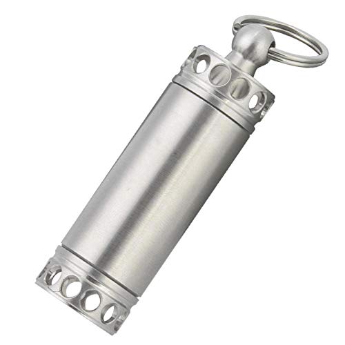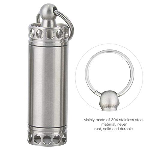 【FACILE DA USARE】 Il portapillole ermetico può essere dotato di pillole di pronto soccorso o pillole di uso comune, piccola pietra focaia, pesce. Attrezzatura di sopravvivenza come lenza da pesca, ci sono anelli per appendere, facili da usare.