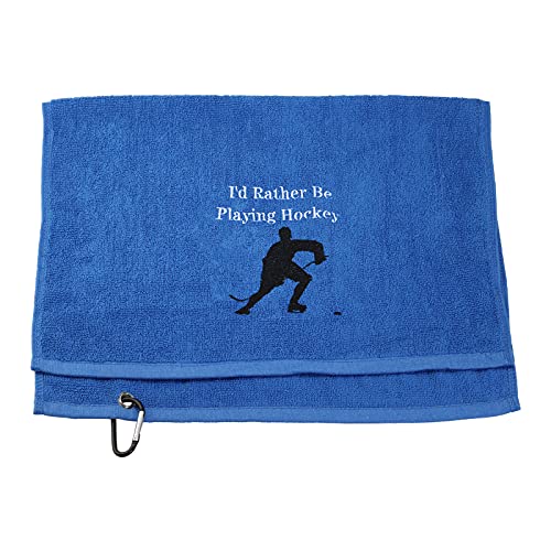 Asciugamano con scritta: "Preferirei giocare a hockey". Divertente asciugamano sportivo a tema hockey, asciugamano amante dell'hockey, asciugamano sportivo per giocatore di hockey, regalo di hockey su ghiaccio. Con un occhiello d'argento e una clip nella parte superiore per appendere l'asciugamano alla borsa.