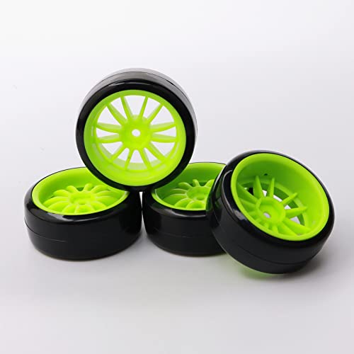 Pxyelec 4pcs 12-razze verdi cerchi pneumatici pneumatici per RC 1/10 Drift Car