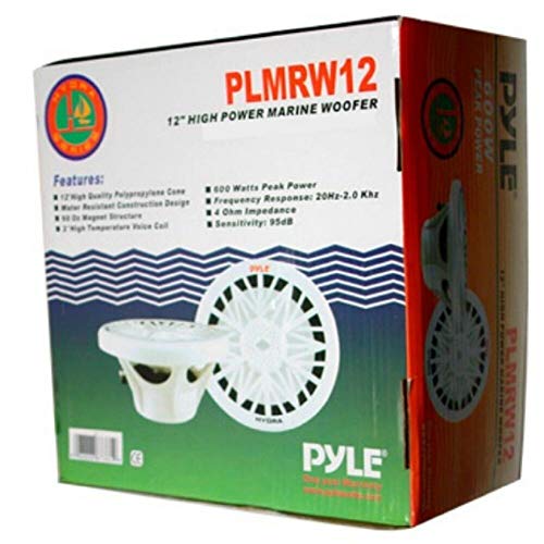 Pyle SUBWOOFER Impermeabile Water Proof PLMRW12 12" 30,00 CM 300 MM Bianco per IMBARCAZIONI Barca GOMMONE O Piscina O Locali ALL'APERTO, Singola Bobina da 4 Ohm da 300 Watt RMS E 600 Watt Max