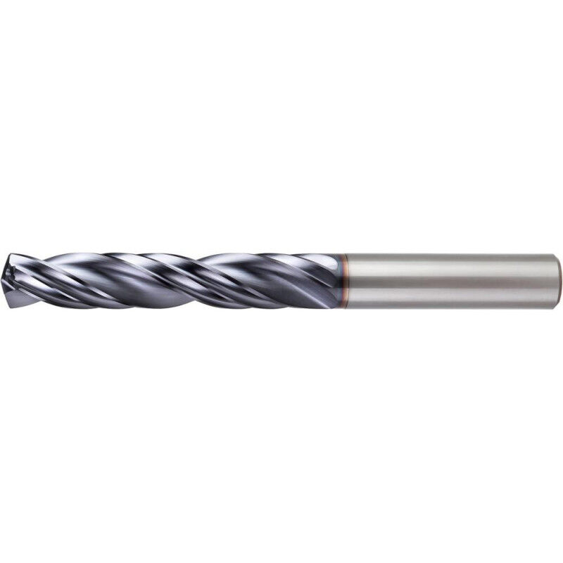 Alesatore a piramide VHM. Rivestito in TiAlN - Metallo duro integrale - Gambo DIN 6535-HA - Standard di fabbrica - Tolleranza alesaggio ≥ IT7 - Affilatura a punta specifica con piramide - Angolo di spoglia laterale 30° - Angolo di punta 140° - 4 smussi di guida - Con raffreddamento interno - Ingresso foro inclinato fino a max. 10°