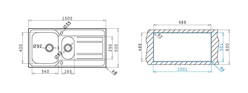 Pyramis ZEDA EXTRA (100x50) 1B 1D, Lavabo da incasso in acciaio lucido, 101220312