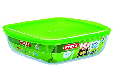 Pyrex - Contenitore quadrato per cucinare e conservare, con coperchio, 25 x 22 cm, 1,7 l