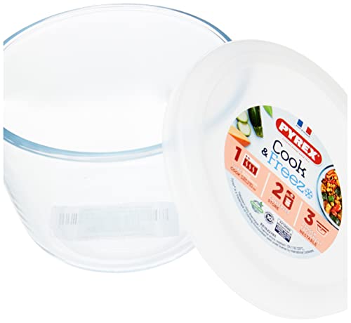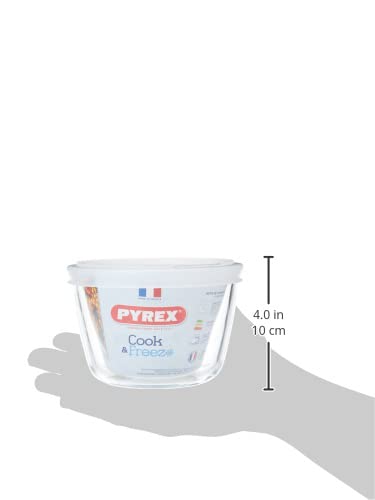 Pyrex Cook&Freeze Contenitore Rotondo con Coperchio, 12 cm - 0,6 l, in Vetro borosilicato Extra Resistente, Adatto al Forno, 12cm