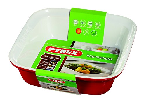 Pyrex Impressions - Teglia da forno quadrata, in porcellana dura, 24 x 24 cm, colore: Rosso