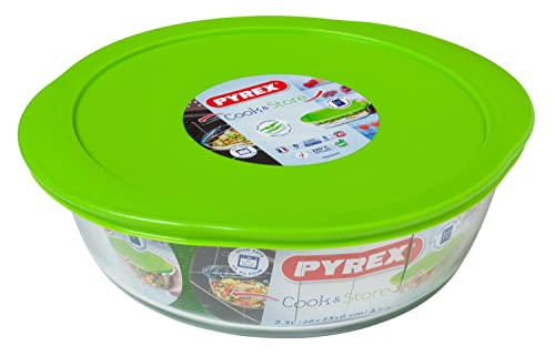 Pyrex - Recipiente rotondo per conservare gli alimenti, con coperchio, in vetro, 1 L 2.3L