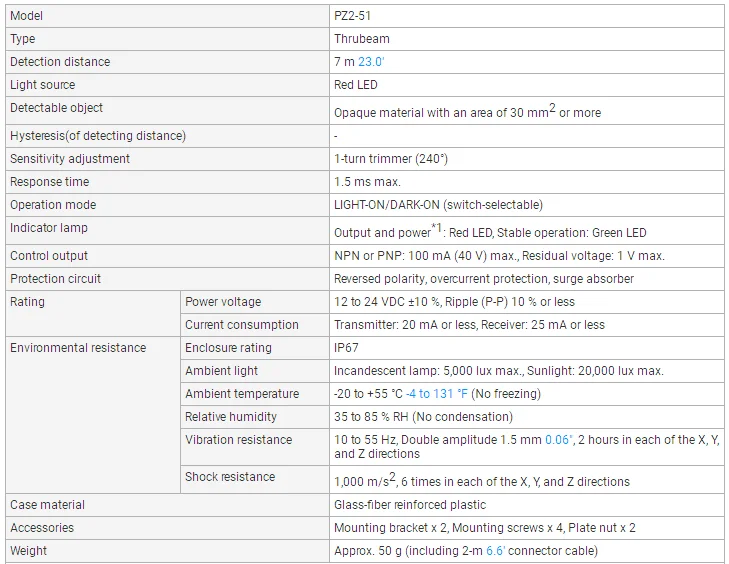 PZ2-51 Photoelectric Sensor Warranty For Two Year
