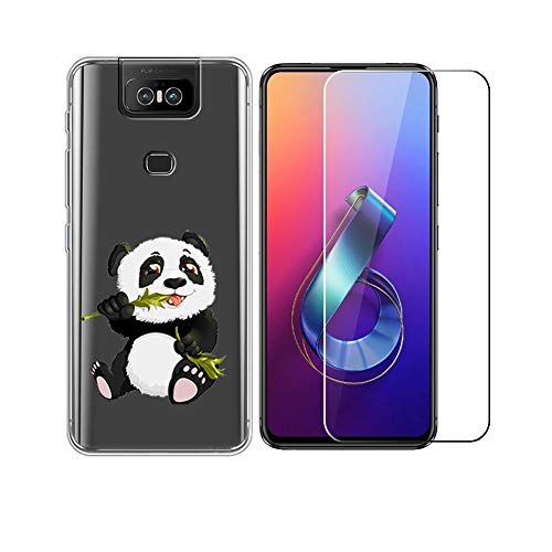 PZEMIN Custodia per ASUS Zenfone 6 ZS630KL Cover Silicone Trasparente TPU Bumper Leggero Morbido Shell Case + Film di Vetro Temperato per ASUS Zenfone 6 ZS630KL Pellicola Protettiva (6.4")
