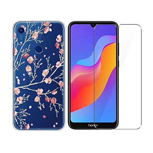 PZEMIN Custodia per Huawei Honor 8A Cover Trasparente Silicone TPU Leggero Morbido Shell per Huawei Honor 8A Case + Avanzata Vetro Film Temperato Pellicola Protettiva (6.1")