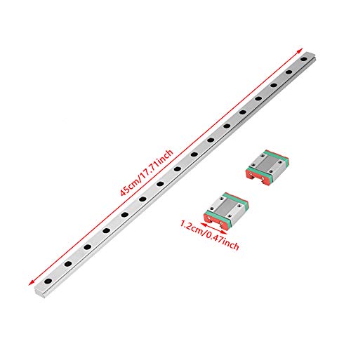 1 pzGuida lineare in miniatura da 450 mm con 2 blocchi lineari MGN12B, guida di scorrimento in acciaio per cuscinetti Guida per stampante 3D fai-da-te