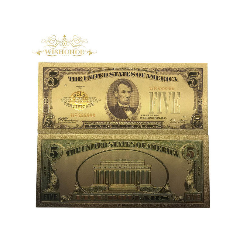 Nome:10 pz/lotto Nizza Americano Banconota del 1923 Anno USD 5 Dollaro Banconote in 24k Placcato Oro Falso Soldi di Carta Per collezione Qualità: 100% di Alta qualità lamina d'oro puro Materiale: stagnola di Oro + Pet 1. Your Soddisfacente è il nostro più grande felicità, Quindi, le vostre risposte è estremamente importante per noi. 2. If siete soddisfatto con i nostri prodotti, si prega di lasciare us 5 inizio le risposte. 3. Pls in contatto con noi prima di lasciare qualsiasi negaive di risposte neutre.Faremo del nostro meglio per risolvere il problema. FAQ 1. Payment:Aliexpress, T/T(30usd tassa d'istruzione), Western Union,paypal 4% 2.International Espresso: DHL,TNT,FEDEX, posta di aria dell'alberino della cina, e-pacchetto, porta a porta di servizio. 3. Politica di ritorno: Se non siete soddisfatto con il vostro acquisto, è possibile scambiare l'articolo. L'articolo restituito deve essere nuovo con la modifica e nello stato originale. Il compratore deve mettersi in contatto con