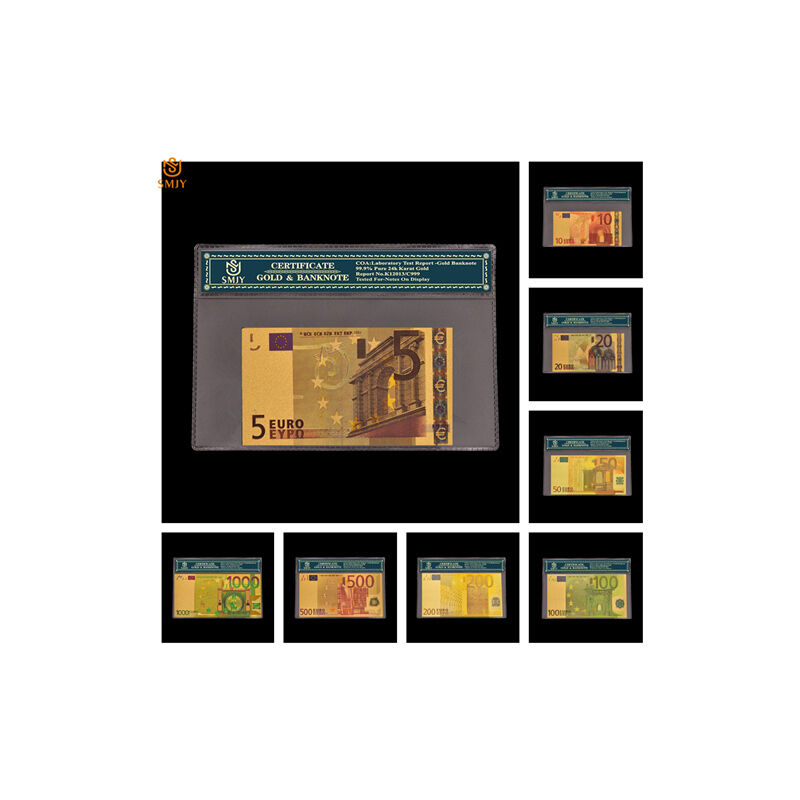 8 Pz/lotto Europeo di Banconote In Oro Sets5.10.20.50.100.200.500.1000 Euro Nota Banca I Soldi di Carta Per I Regali Di Natale Cornice Circostanza: 100% Nuovo di Alta QualitàTipo: BanconotaArtigianato: Placcato OroDenominazione: 5.10.20.50.100.200.500.1000 EuroTema: Europeo ValutaLuogo Di Produzione: CinaFormato: Come Dimensione RealeArea: EuropaUso del prodotto: Home Office Decorazione, Collezione di Souvenir, Regali di Festa Da collezione di banconote in oro permette di capire e comprendere le monete di vari paesi, migliorare il patrimonio personale e allo stesso tempo di diffondere la cultura. Allo stesso tempo, si può evitare la familiarità con le monete dei paesi quando si va all'estero. È conveniente per voi a viaggiare felicemente. Credere in te stesso, grande. Artista.