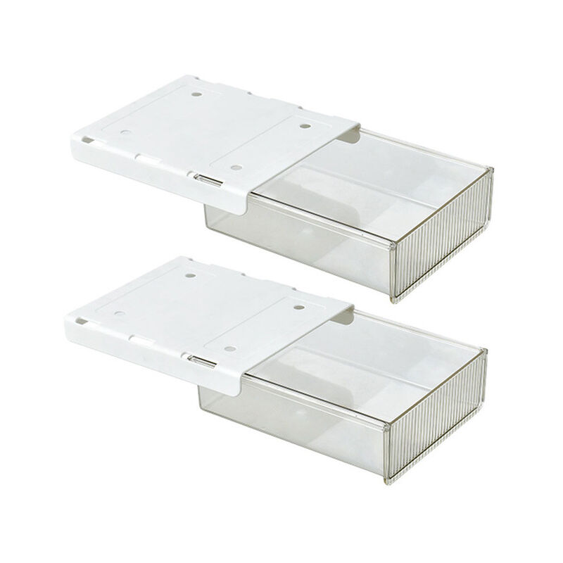 2 pz/lotto scatola di immagazzinaggio trasparente sotto scrivania cassetti portaoggetti Home Office organizzatore creativo vassoio nascosto organizzazione strumento,White-24x21x6.2cm