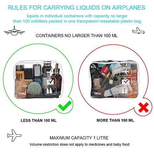 Grande capacità - I sacchetti per articoli da toeletta Anrui hanno una grande capacità, che è più grande del sacchetto medio con cerniera quart per contenere tutti i tuoi articoli inclusi. (Non riempire eccessivamente ~ Se il contenitore del liquido supera i 3,4 once / 100 ml , la sicurezza dell'aeroporto potrebbe non consentire lo porti in aereo.) I pacchi da 2 possono contenere più oggetti.