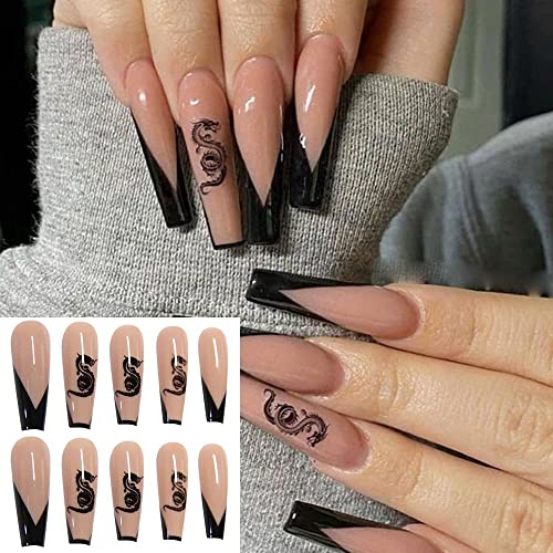 24 pz/scatola Ballerina Artificiale Copertura Completa Staccabile Manicure Unghie Finte Drago Lungo Bara Unghie Finte Indossabili