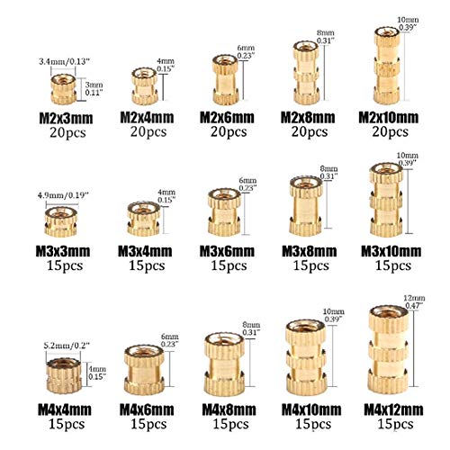 250 pz/set dado-M2 M3 M-4 dado zigrinato inserto dado inserto in ottone (3MM 4MM 6MM 8MM 10MM 12MM)