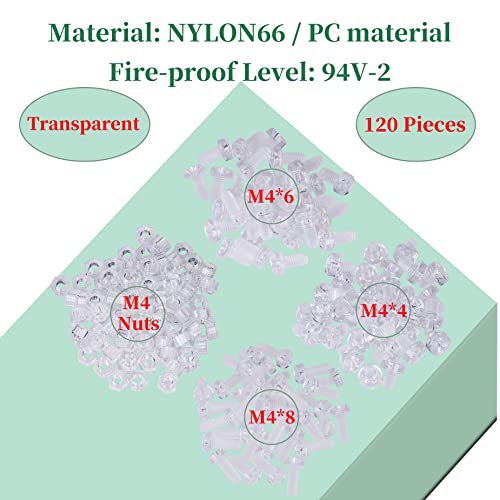 Pzsmocn 120 pezzi M4 PC Acrilico Trasparente Viti e dadi in Kit. M4 * 4 mm/M4 * 6 mm/M4 * 8 mm Vite a Croce Phillips in Plastica Vite a Mano e Set Di Dadi Esagonali.