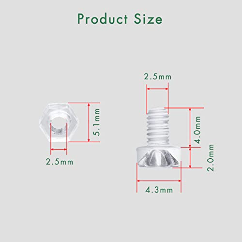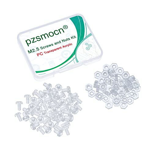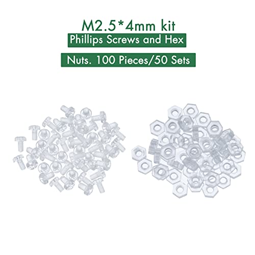Pzsmocn 100 Pezzi / 50 Set M2,5 PC Kit Viti e Dadi Acrilico Trasparente. Vite in Plastica M2,5 * 4 mm PC Acrilico Trasparente Croce Stringere a Mano Vite Tonda e Kit M2,5 Dado Esagonale.