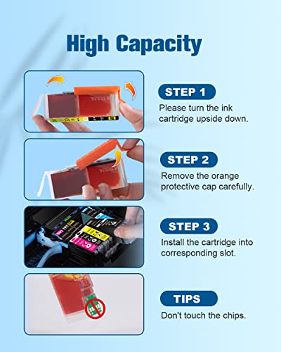Offriamo file di testo chiaro e foto con colori saturi. La stampa è liscia e colorata. 1 PGI-580XXL BK, 1 nero CLI-581XXL, 1 ciano CLI-581XXL, 1 magenta CLI-581XXL, 1 giallo CLI-581XXL, 1 foto blau CLI-581XXL per le vostre esigenze quotidiane.