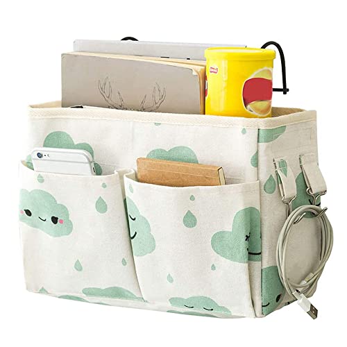 【Materiale Eccellente】 La borsa per appendere l'organizzatore del letto contenitore sul comodino è realizzata in ferro e lino, che è leggera, spessa, resistente all'usura, impermeabile, durevole e facile da pulire. Il gancio in ferro ha una forte capacità portante.