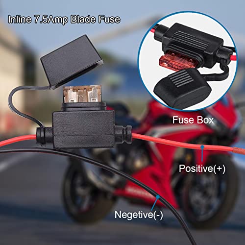▲ Sicurezza affidabile: realizzato in ABS ignifugo e buoni materiali in rame conduttivo con fusibile a lama in linea da 7,5 A, resistente al calore e alla corrosione che funziona bene con un'ampia gamma di tensioni di DC 12-24 V, ottimo per quasi tutte le moto.