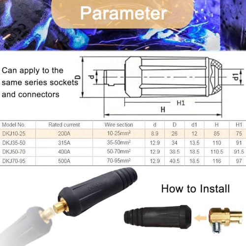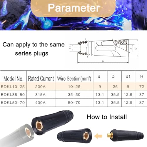 [La confezione include]: riceverai 2 pezzi DKJ10-25 e 2 pezzi DKL10-25,100Amp-200Amp Connettore rapido per cavo di saldatura maschio-femmina.