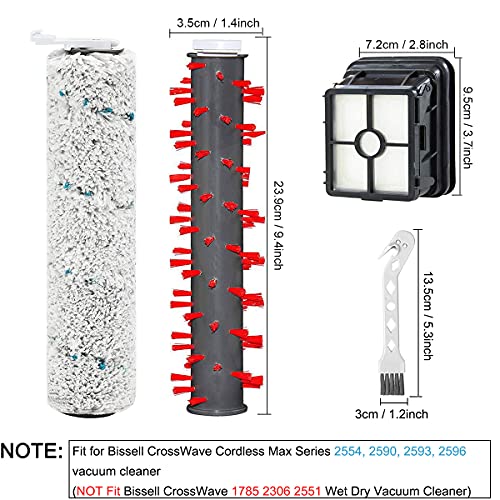 Perfetta vestibilità: adatta per Bissell CrossWave Cordless Max Series aspirapolvere 2554, 2590, 2593, 2596, come 2554A 25542 25548 2539 2554 2590 2596 2596B 2596M (non adatto per aspirapolvere Bissell CrossWave 1785 2306 2551 Wet Dry).
