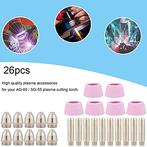 QAQGEAR 25 Pezzi SG-55 AG-60 WSD-60 Kit consumabili Punta Torcia per taglierina al Plasma per Torcia SG-55 AG-60 WSD-60