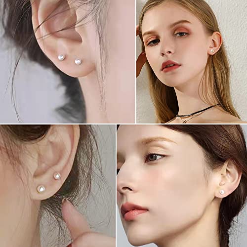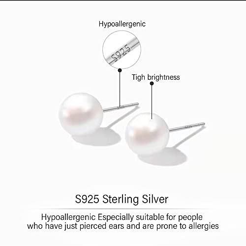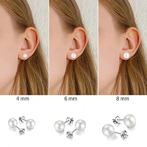 QAQHZW Orecchini di Perle Donna 925 Argento Sterling Orecchini a Bottone con Perle Orecchini Anallergici Donna Ragazze (6mm)