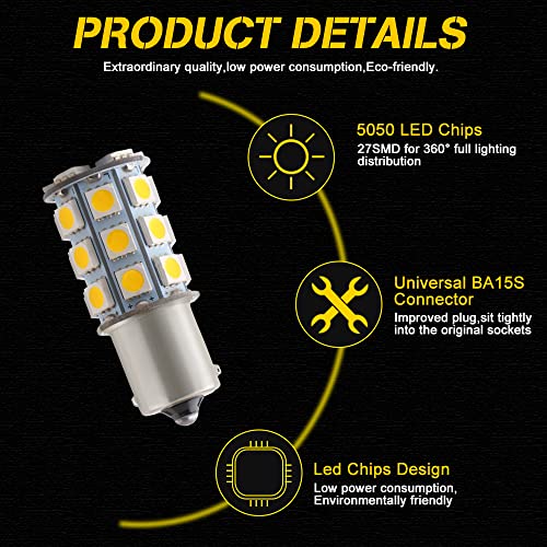Qasim 4x LED 1156 BA15S T25 Lampadine per Luci de Segnale di Svolta Luci di Posizione Retromarcia Luci degli Indicatori 27 5050 SMD Bianco Caldo