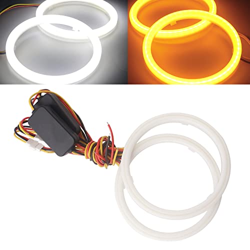 Qasim LED 1Pair 100MM Bianco + Ambra Switchback 120SMD COB LED Halo Ring Angelo Occhi LED Fari Fendinebbia con Guscio in Cotone 12V DC