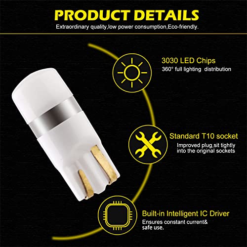 Qasim 10x Lampadine LED Standard T10 W5W Bianco 1SMD 3030 Chip Cuneo 168 194 per Luce Targa Interior Cupola Cruscotto Diretto Larghezza DC12V