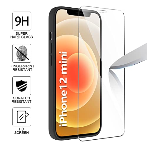 Qasyfanc Cover per iPhone 12 mini, Protezione Fotocamera und 2 Pellicola Vetro Temperato, Fodera in Microfibra Antiurto Ultra Custodia Silicone Morbida Liquido Ultra Sottile 5.4''-Nero