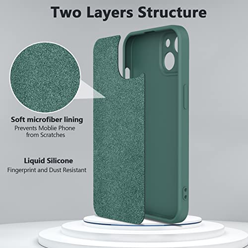 Qasyfanc Cover Protezione Fotocamera Compatibile per iPhone 13 e 2 Pezzi Vetro Temperato, Custodia Sottile Silicone di Alta qualità con Supporto per Anello, Verde